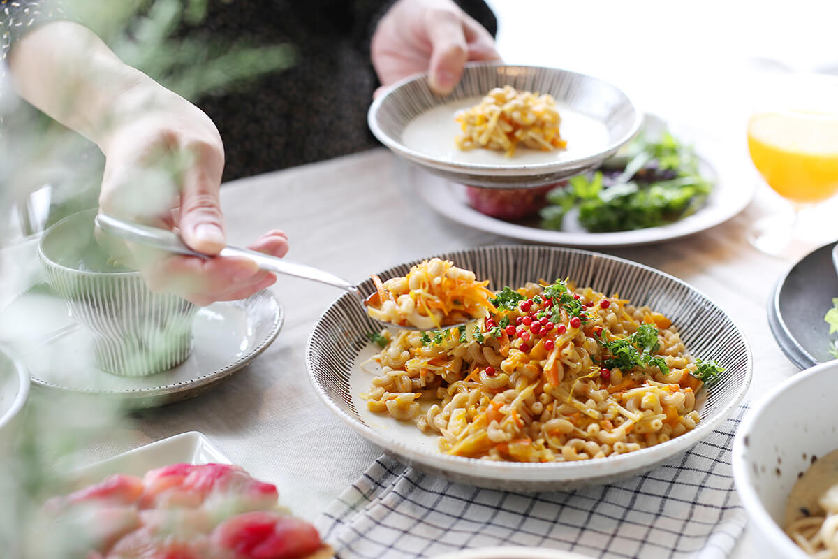 ・白地に近いベースで、色のある料理も映える