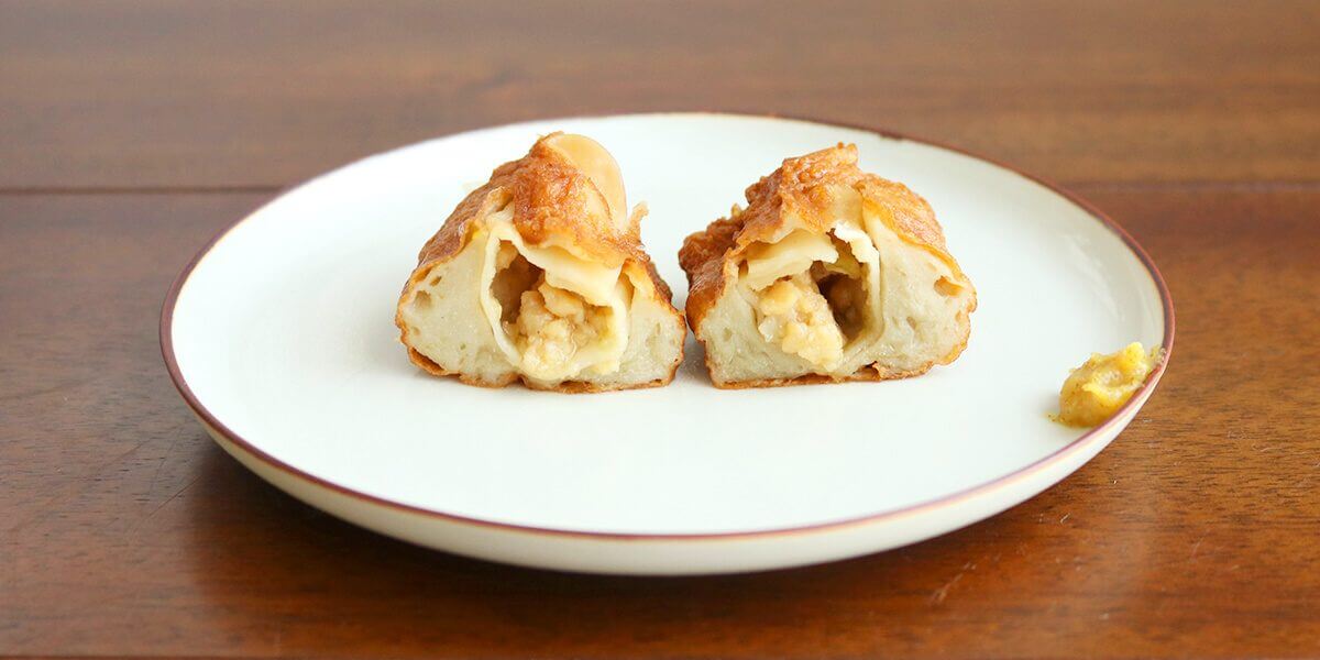 豚肉の肉汁と餃子を包む魚のすり身の旨味を同時に味わえる、秀逸なおでんの具です。九州地方以外の方にもぜひ試していただきたいおでんの具ですね!