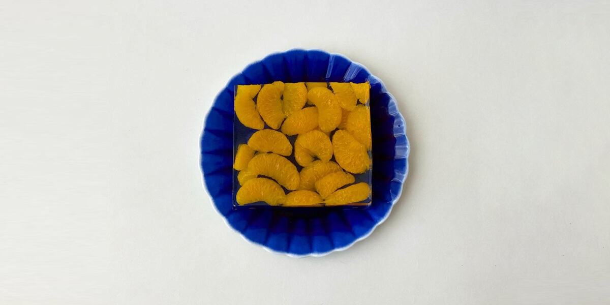 「青い花」というお皿を受け取った時、色の美しさに惚れ惚れしました。この青には鮮やかなオレンジ色を乗せたい!と一瞬で思いました。