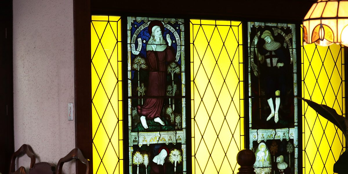 セヴィリヤ店内には様々な調度品や、階段部分には大きなステンドグラスが。美術館のような教会のような、異国情緒溢れる雰囲気を感じることができます。