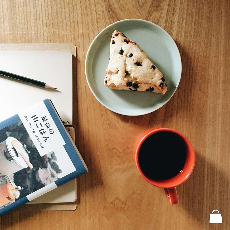 スコーンとコーヒーをおともに。 「週末に行くキャンプで作るごはん、何作ろうかな?」 キャンプは計画を立てることも楽しみのひとつです。
