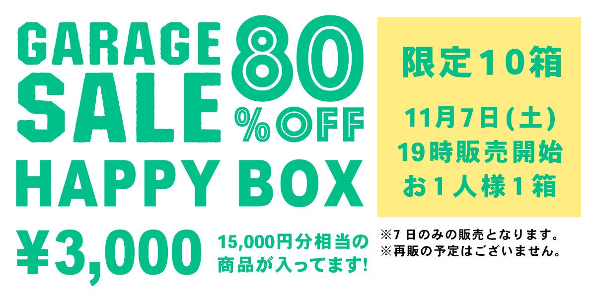 セール実施期間: 11月7日(土)AM10:00 〜 11月9日(月)PM23:59(予定) ※前回のガレージセールで予定受注数を超える受注を受けたことで、発送に多大な時間を要し皆様にご迷惑をおかけしたため、今回のガレージセールでは予定受注数を超えた時点で終了いたします。予告なく終了する場合がございます。予めご了承下さい。