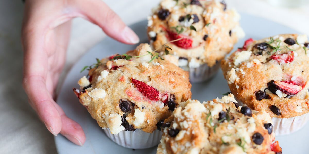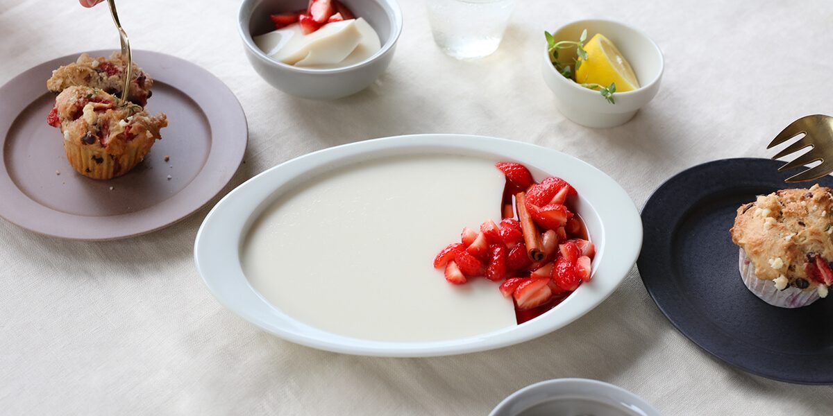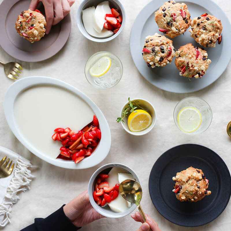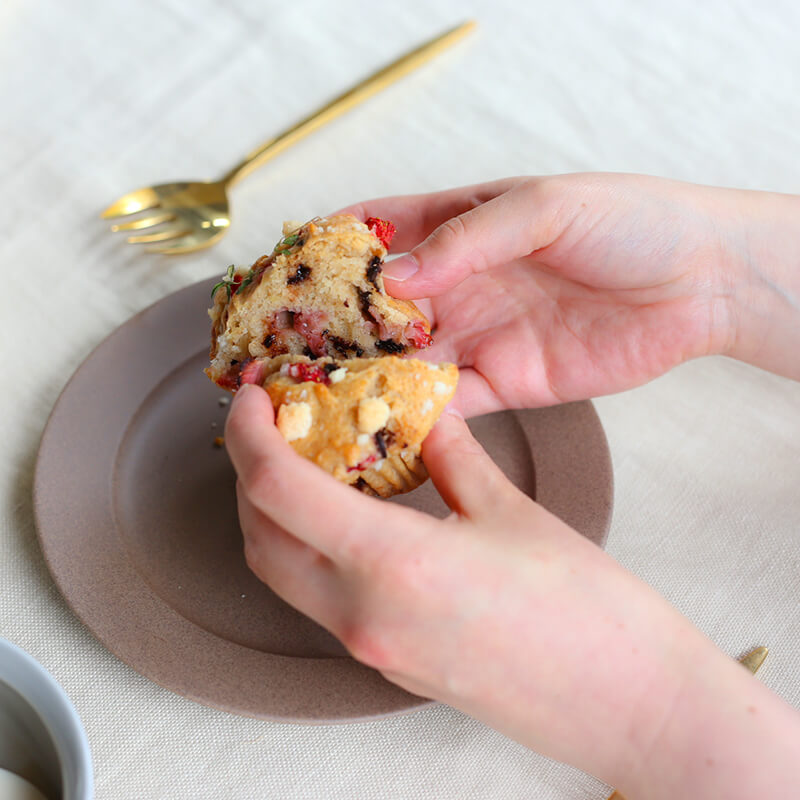 イチゴとチョコチップのお豆腐マフィンを盛り付けるお皿には「TERRA」シリーズを使用しております。