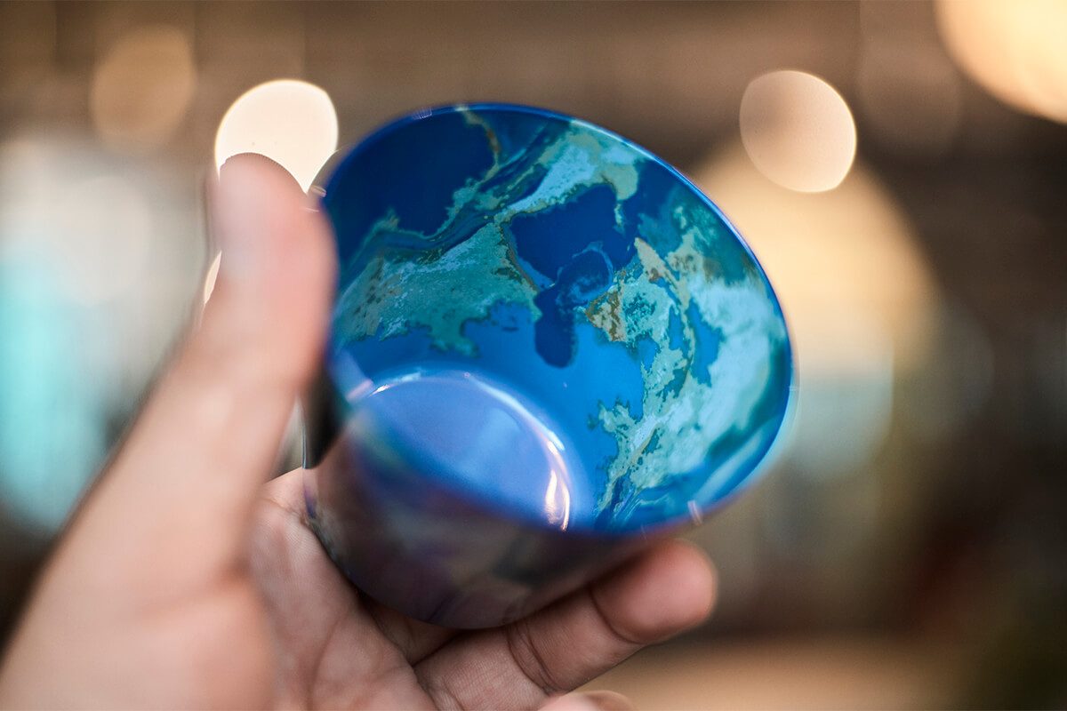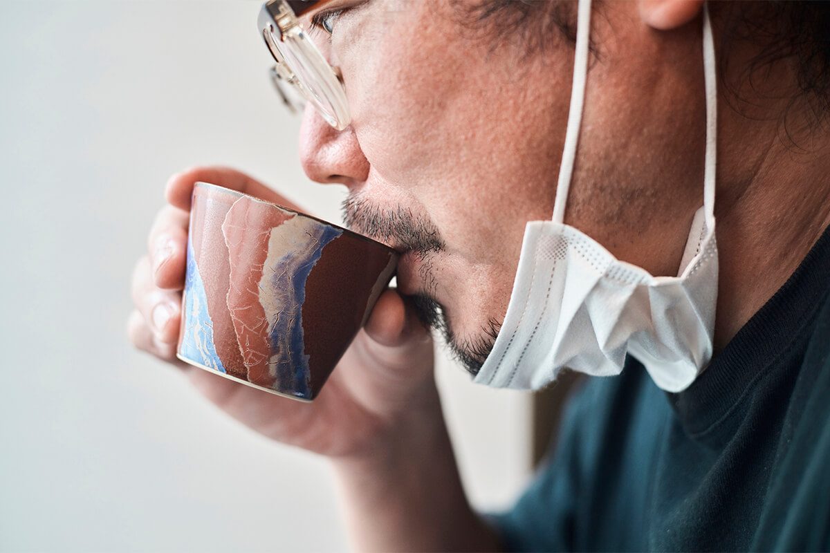 今回はその魅惑のフラットホワイトを、いつもお仕事でお邪魔しているシェアオフィスのラウンジで友人のコーヒーショップが出張提供していると聞きつけて、HEAVEN&EARTH そばちょこ を持参して入れてもらいに行ってきました。