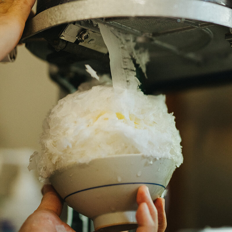 天然氷は非常に溶けにくく、とても硬いのでかき氷機で薄くフワフワに削ることができます。それは、私たちが普段口にしている冷凍庫で凍らせた氷とはくらべものにならない美味しさです。口の中でふわりと溶ける食感は一度食べたら忘れられないでしょう。