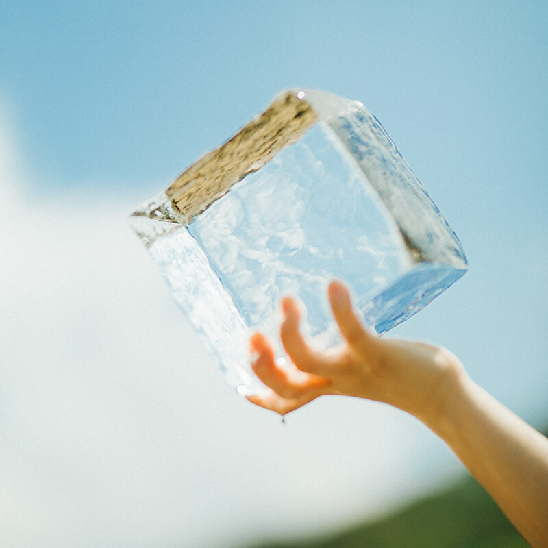 天然氷とは、厳冬に自然の寒さだけでじっくりと時間をかけてできた氷のことを言います。 私たちの天然氷は、湧水が豊富で名水と言われる八ヶ岳麓の山梨県北杜市で少雨寒冷な気候を利用し、丹精込めて丁寧に丁寧に時間をかけて作り上げました。