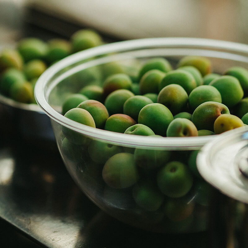 OUCHIの敷地で収穫した梅で作った自家製のシロップソーダ。梅の力で身体喜ぶドリンクです。
