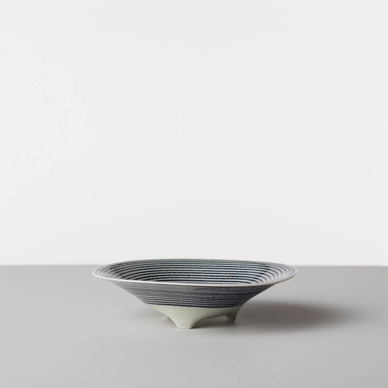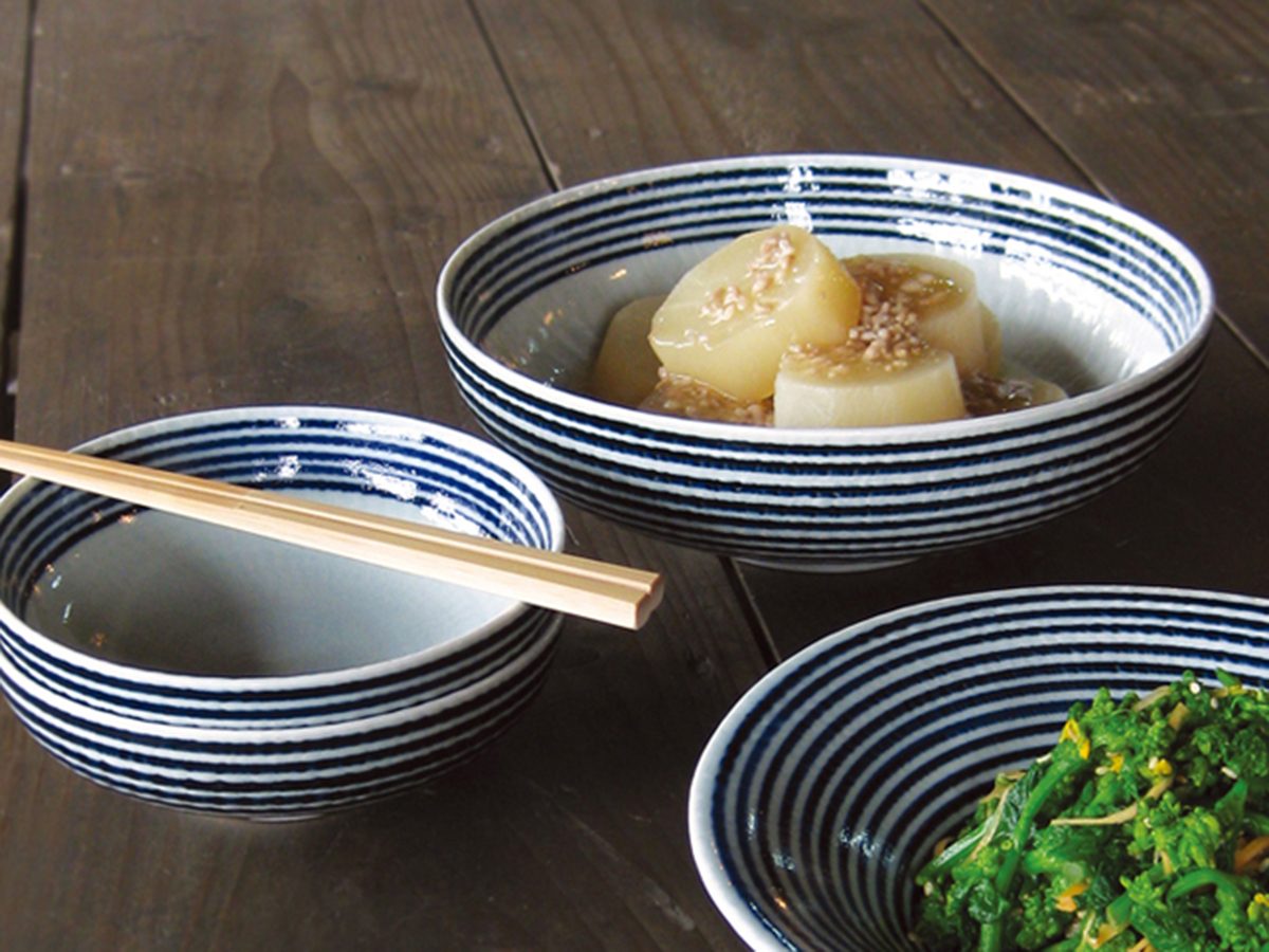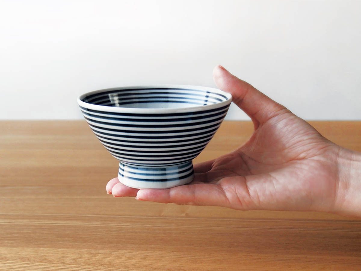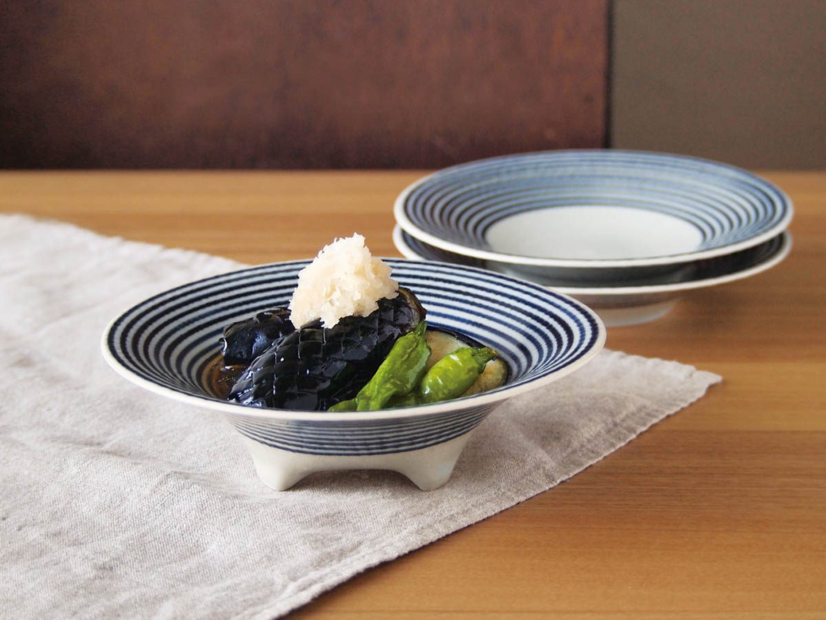 和食にも洋食にも合う、ボーダー柄の中鉢です。3本の脚が付いているので、食卓に立体感が生まれます。