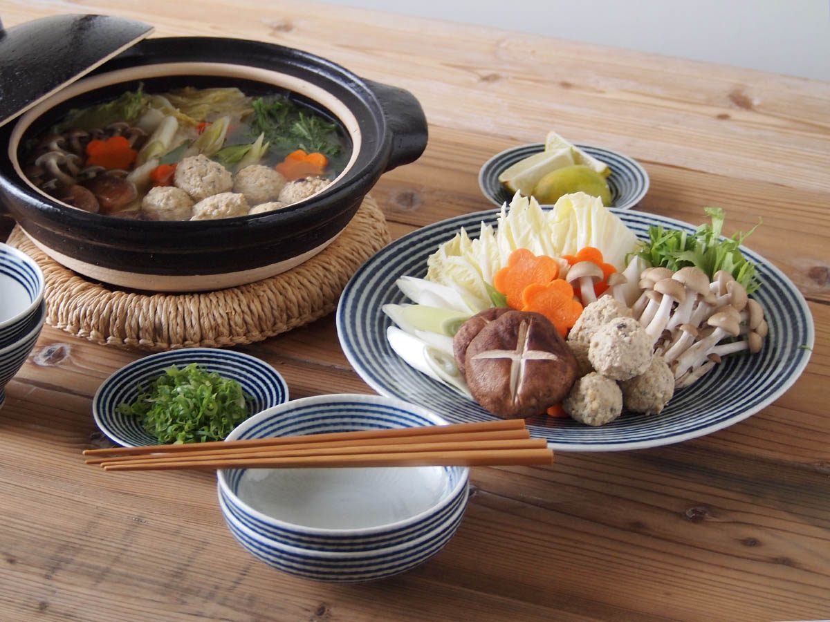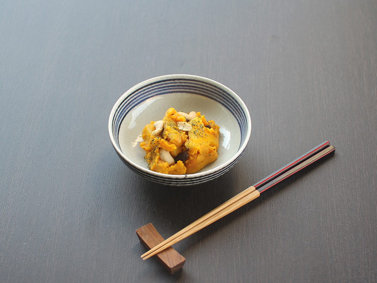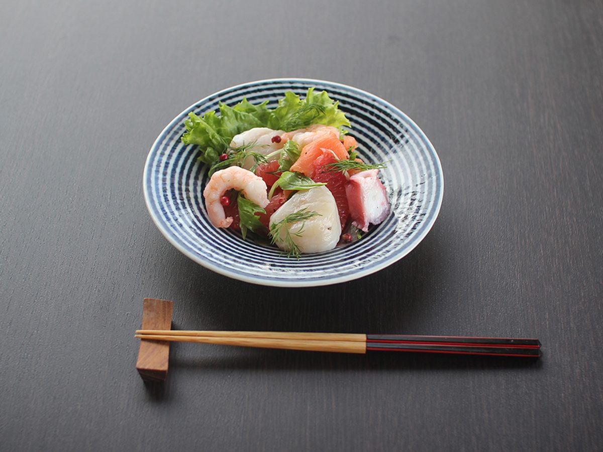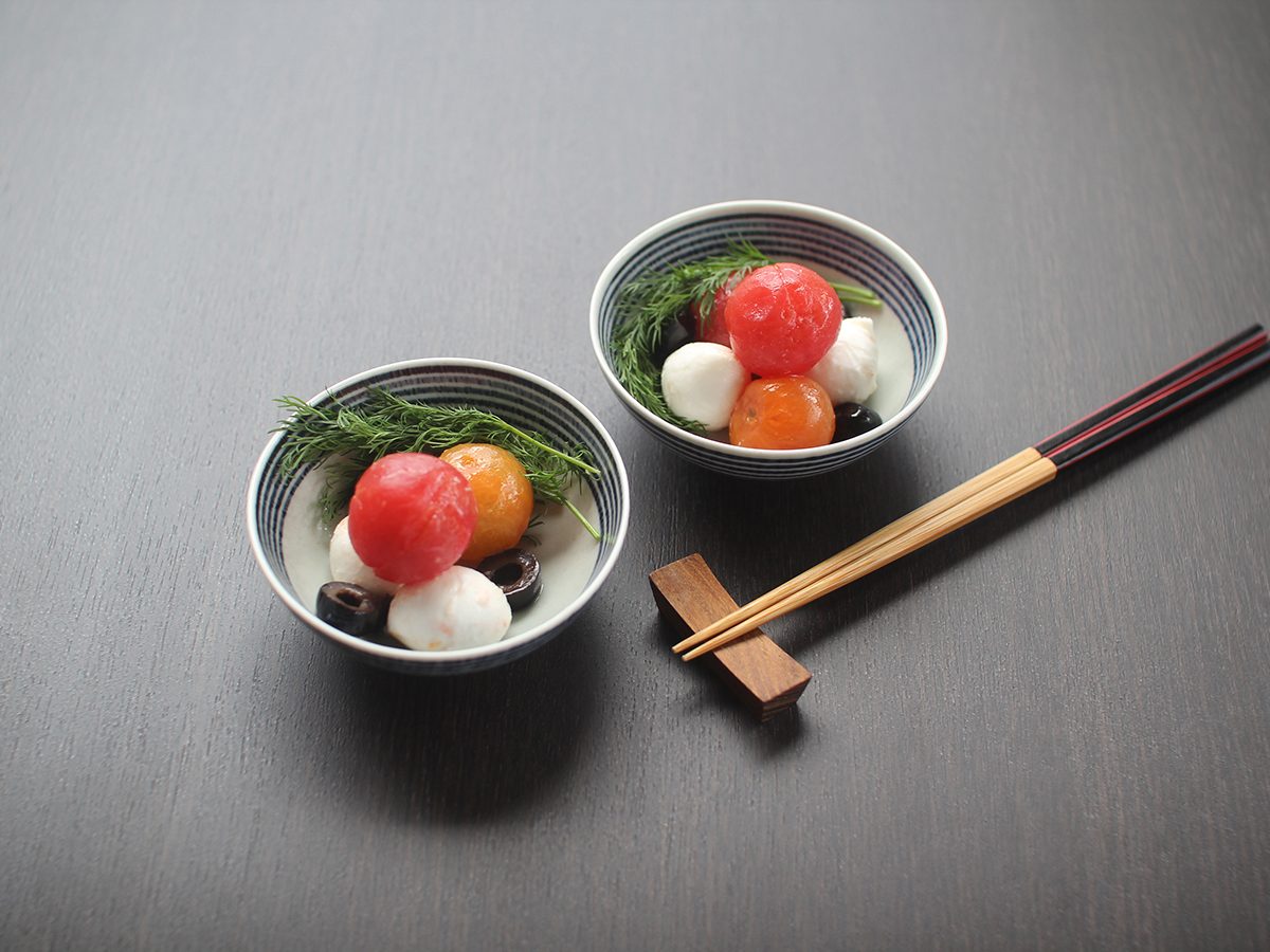 和食にも洋食にも合う、ボーダー柄の中鉢です。3本の脚が付いているので、食卓に立体感が生まれます。