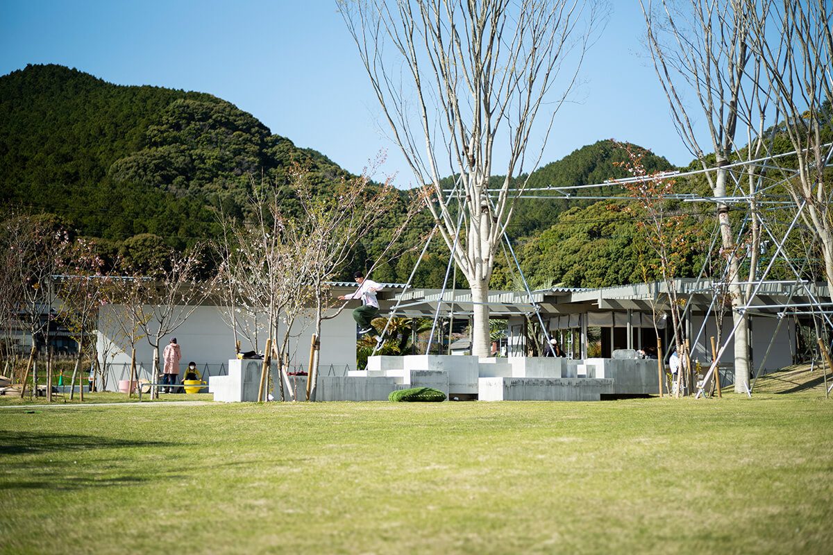 カクカクとした色々な大きさの高低差も様々な立方体を組み合わせて出来たモルタル製のロボットが横たわっているかのような丘、それがロボットの丘です。よく見ると表面がひび割れた模様に覆われています。まるでやきものに見られる貫入のようです。このひび割れ模様は、当初塗装して仕上げる予定だったロボットの丘を、下地剤を塗った後に偶然現れた模様を良しとし、そのまま活かして完成にしたものです。やきもの屋さんの公園にふさわしい遊び心です。無敵のはずのロボットが傷つき倒れる表現は、嫌いじゃないむしろ好みの展開です。