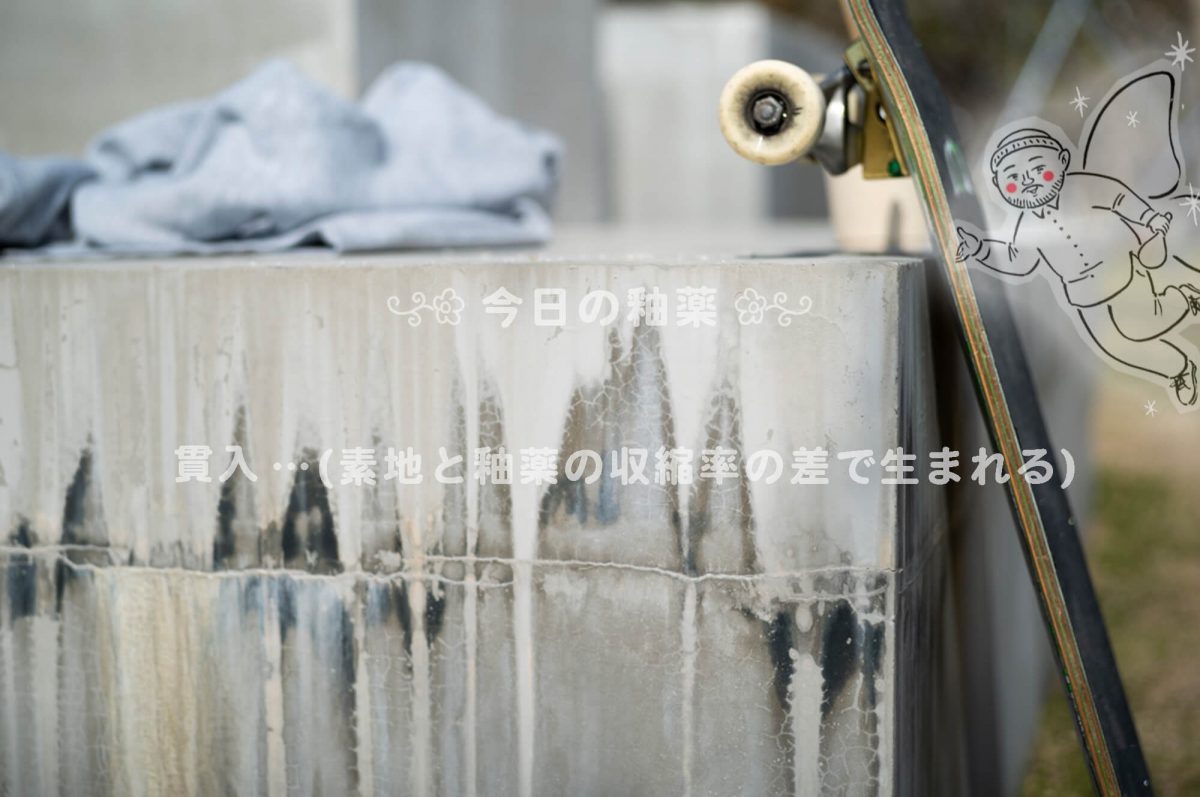 このひび割れ模様が出来た仕組みはきっと貫入の入る仕組みと似ているのではないかと思います。貫入はやきものを焼成するときに、生地と釉薬の縮む大きさが違うことによって生まれます。やきものは焼いて完成するまでに必ず10〜15パーセントほど収縮します。その際に生地より大きく縮んだ釉薬がひび割れることによってappear するのが貫入です。