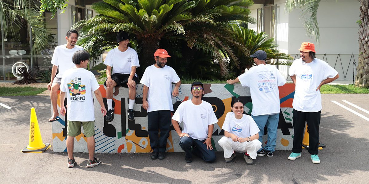 「SOUND SHOP balansa」のブランドロゴに描かれている”釜山”を、マルヒロがある長崎県“波佐見”にリデザインし、胸元にさり気なくプリントしています。