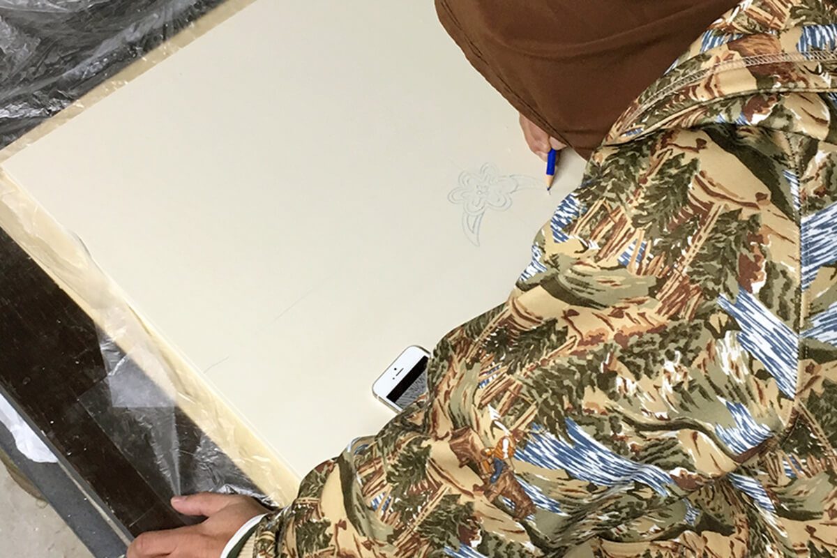 POPYOILのアートワークを使って飾り皿を作るワークショップ。