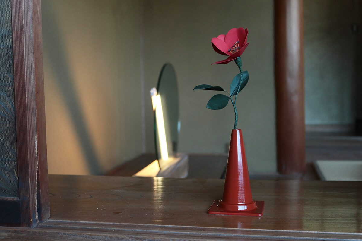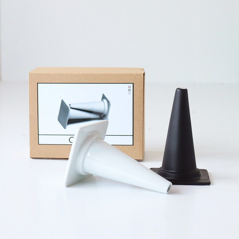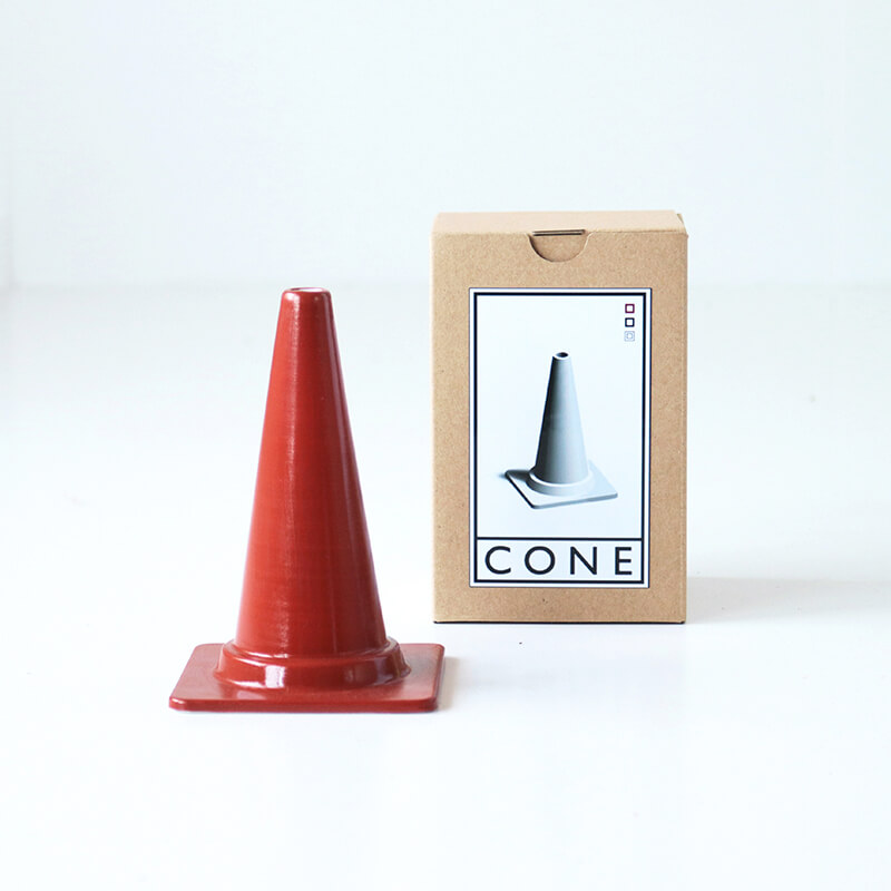 カラーコーンを約5分の1サイズに縮小した磁器製のフラワーベースは、花を1本飾るためのもの。 てっぺんからひょっこりお花が出てきてキュートな一輪挿しは性別問わず使えます。