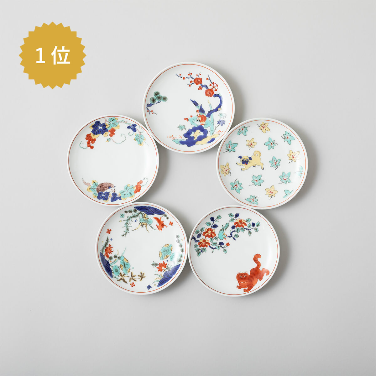 可愛い動物が描かれた小皿です。延宝時代の色合いと様式をベースに、現代のペットと伝統的な文様を組み合わせています。