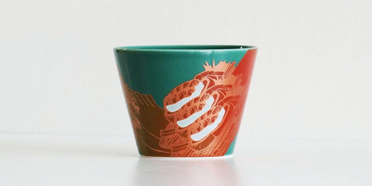 現代的な和のフィルターを通してスケボーの本質と遊び心をウィットに富んだデザインで表現している「Evisen」のグラフィックを、有田焼と並び最高峰の技術をもつ「伊万里 鍋島焼窯元 畑萬陶園」が再現。異なる分野で活躍するスペシャリスト達が手掛けた一点もののストリートアートプロダクトです。