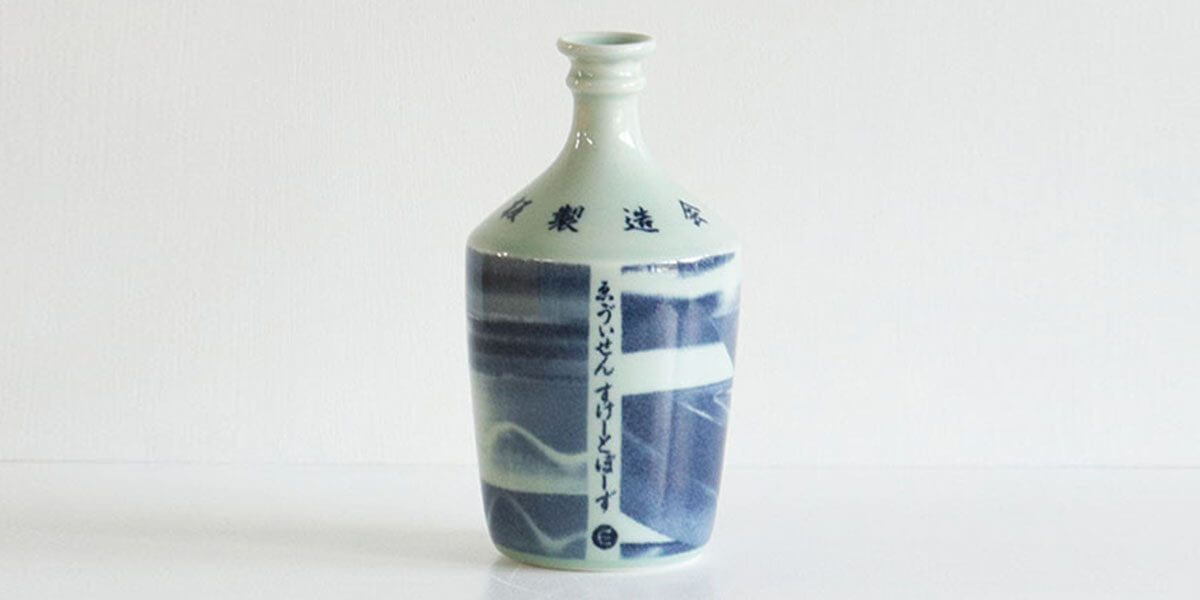 波佐見焼を代表するアイテム、コンプラ瓶にEvisenの刀のグラフィックをプリントしました。ヴィンテージの波佐見焼を思わせる褪せた呉須の色味がマッチして味わい深い一品です。お酒を入れたり、花瓶としても使用できます。