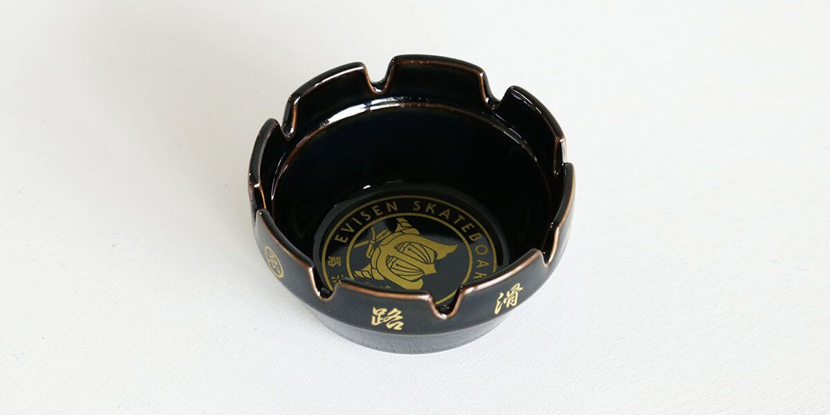Evisenの別名「路滑板製造会社ゑ」の文字がデザインされたアッシュトレイです。。