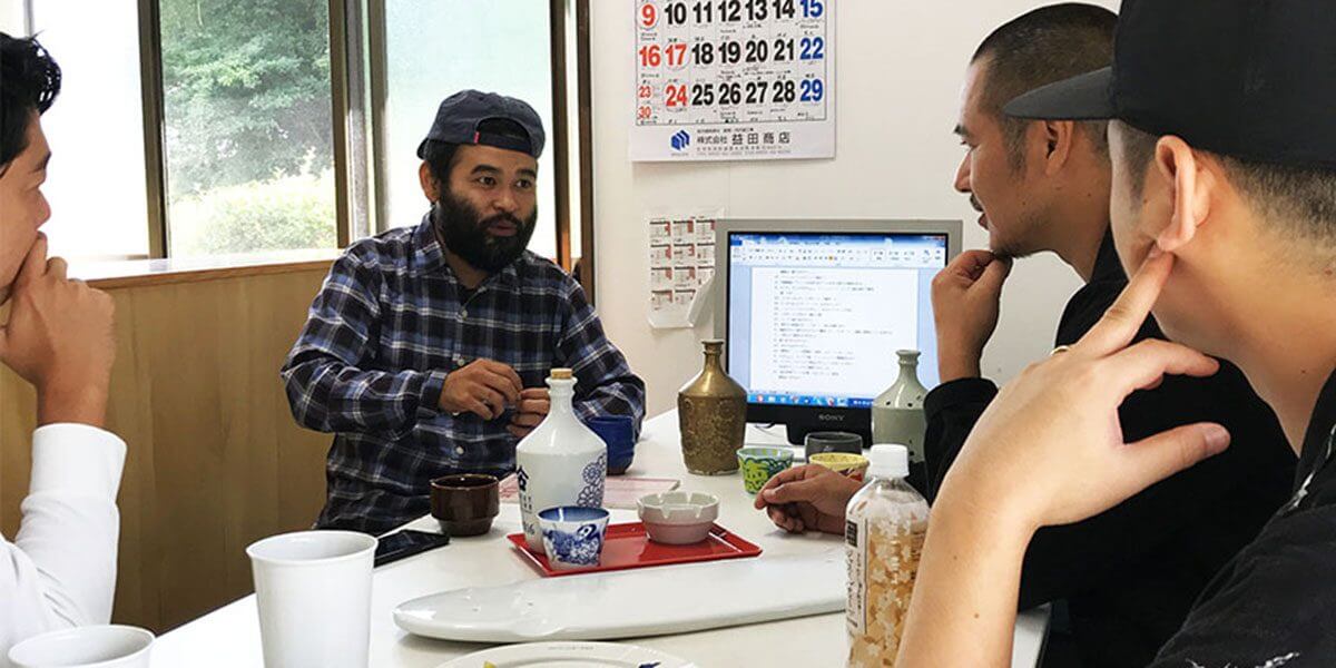 翌2018年9月、長崎波佐見町のマルヒロにて初めてのミーティング。 evisen代表、南氏とデザイナーの濱口氏、en one tokyo の新井氏、マルヒロの馬場。