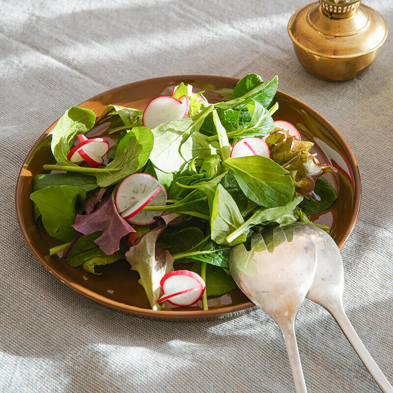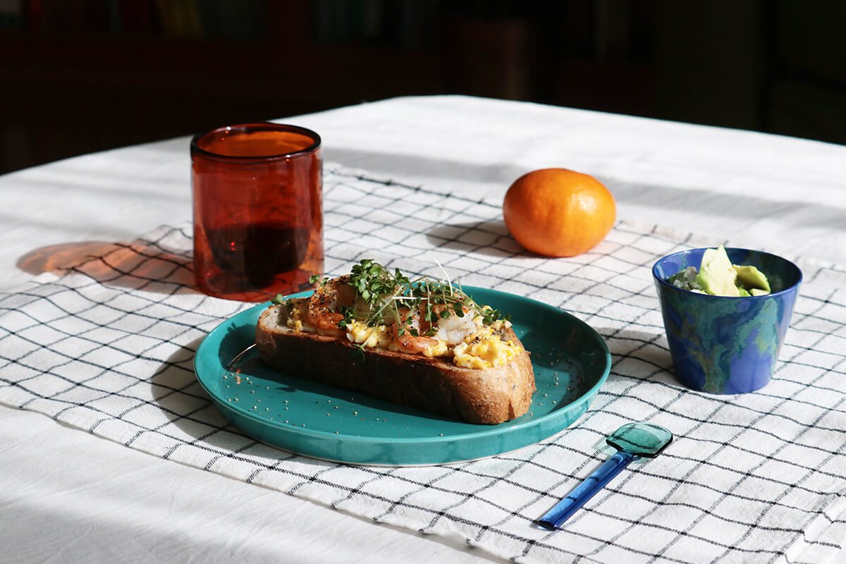 直径22cmで、食パンの脇にサラダやフルーツなど盛り付ける事ができるサイズ感です。