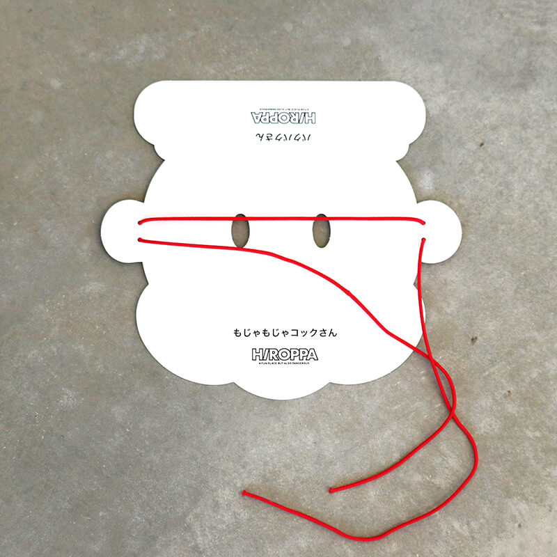 赤い紐はゴムになっていて、大人も使えるサイズ。小さい子は結んで調節してね。
