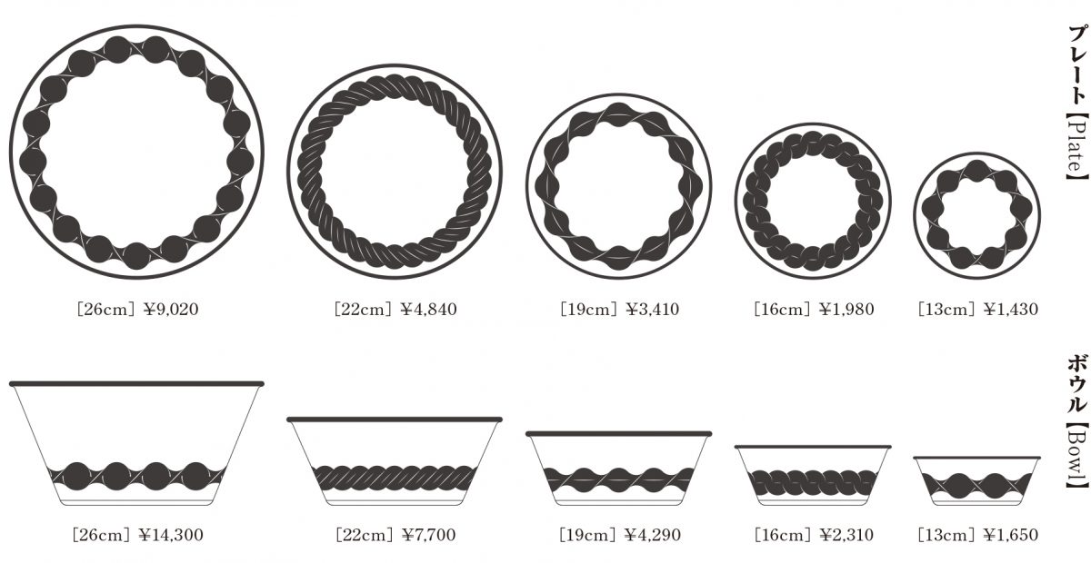 本シリーズで展開するアイテムは、応量器をイメージして設計した5サイズのボウルとプレート。