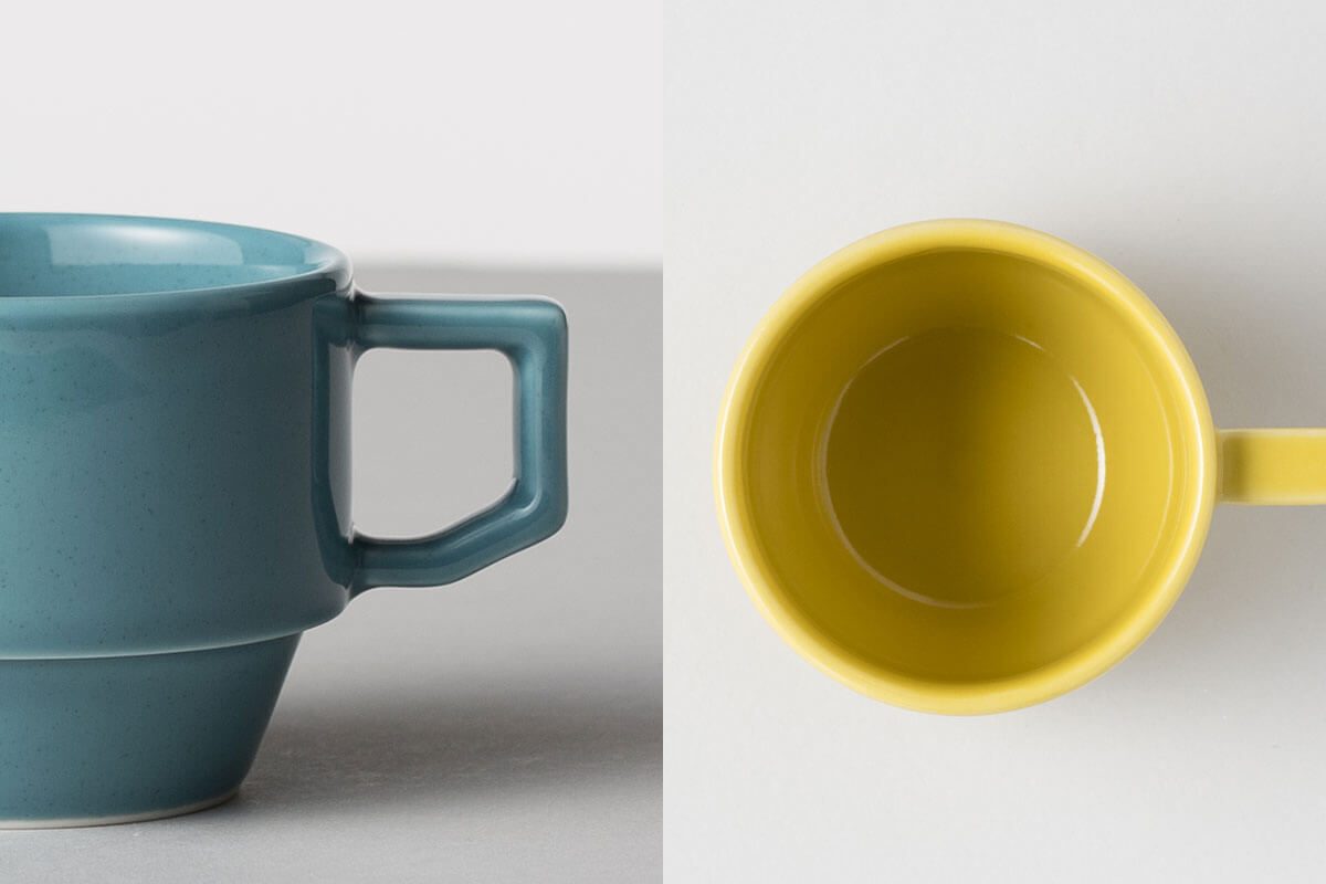 注目ポイント 外側のフォルムは無骨で角のあるデザインですが、お皿の内側やマグカップのハンドルの内側、カップのふちは手に持った感触や口あたりがいいように、また、洗いやすいように丸く仕上げています。